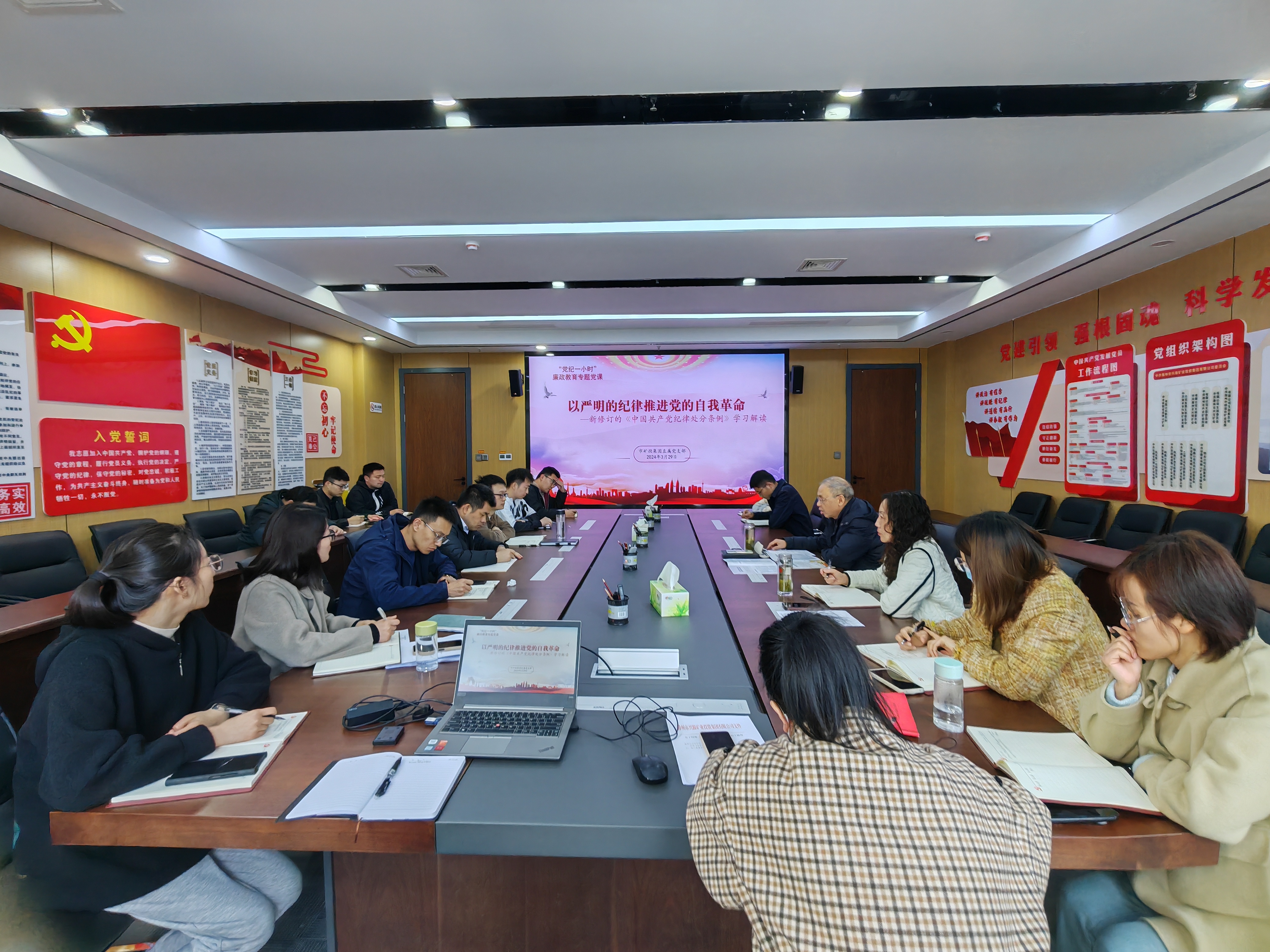 為進(jìn)一步學(xué)深悟透習(xí)近平總書記關(guān)于黨的自我革命的重要思想,推進(jìn)全面從嚴(yán)治黨向縱深發(fā)展,3月29日,市礦投集團(tuán)以學(xué)習(xí)貫徹新修訂的紀(jì)律處分條例為契機(jī),開展“黨紀(jì)一小時”宣講教育活動。市礦投集團(tuán)黨委委員、駐市礦投集團(tuán)紀(jì)檢監(jiān)察組組長芮金保以“以嚴(yán)明的紀(jì)律推進(jìn)黨的自我革命“為題,圍繞學(xué)習(xí)解讀新修訂《中國共產(chǎn)黨紀(jì)律處分條例》進(jìn)行宣講。