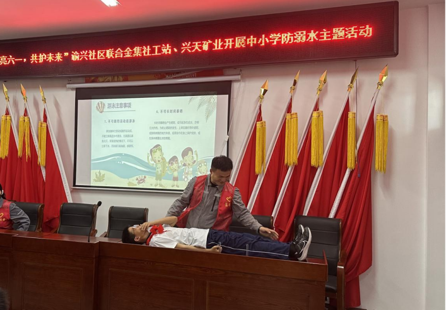 活動(dòng)現(xiàn)場(chǎng),興天礦業(yè)志愿者通過發(fā)放防溺水知識(shí)手冊(cè)、播放防溺水科普視頻以及演示心肺復(fù)蘇等方式科普了基本防溺水及救護(hù)常識(shí),有效提高在場(chǎng)學(xué)生防溺水意識(shí)。